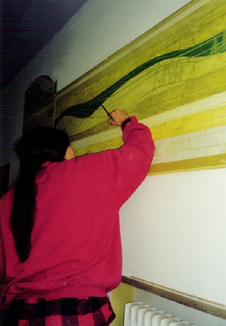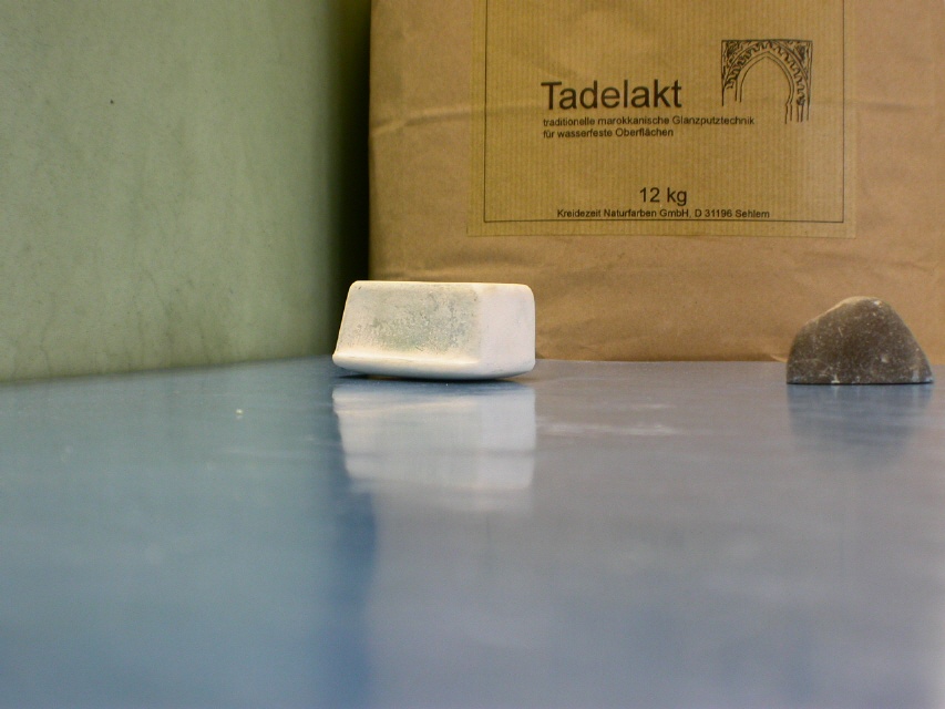 Mörtel läßt sich mit Pigmentfarben fast beliebig einfärben. Durch Schleifen und Polieren kann man damit marmorähnliche Oberflächen von hohem ästhetischen Reiz erzielen. Dabei entsteht keine billige Immitation. Vielmehr gibt diese recht arbeitsintensive Technik dem Künstler wesentlich vielfältigere Mittel an die Hand, als es mit Natursteinen möglich wäre.